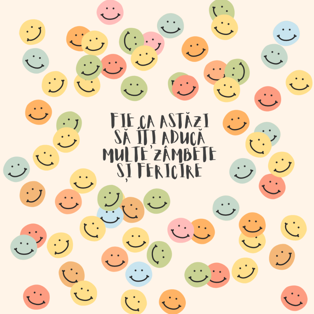 Fie ca astăzi să îți aducă multe zâmbete și fericire! Fiecare zi este o oportunitate de a descoperi bucuria în lucrurile simple, de a te conecta cu cei dragi și de a aprecia frumusețea din jurul tău. Lasă fiecare zâmbet să fie o rază de soare care îți încălzește inima și te umple de optimism. Să ai parte de momente de neuitat și de o fericire care să te însoțească pe parcursul zilei!